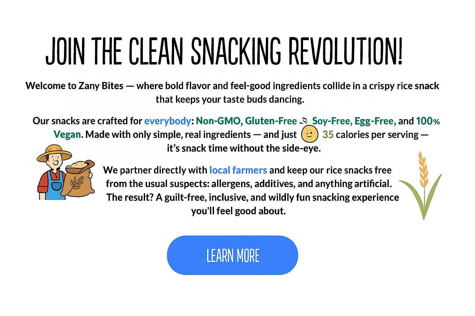 Welcome to Zany Bites — where bold flavor and feel-good ingredients collide in a crispy rice snack that keeps your taste buds dancing.